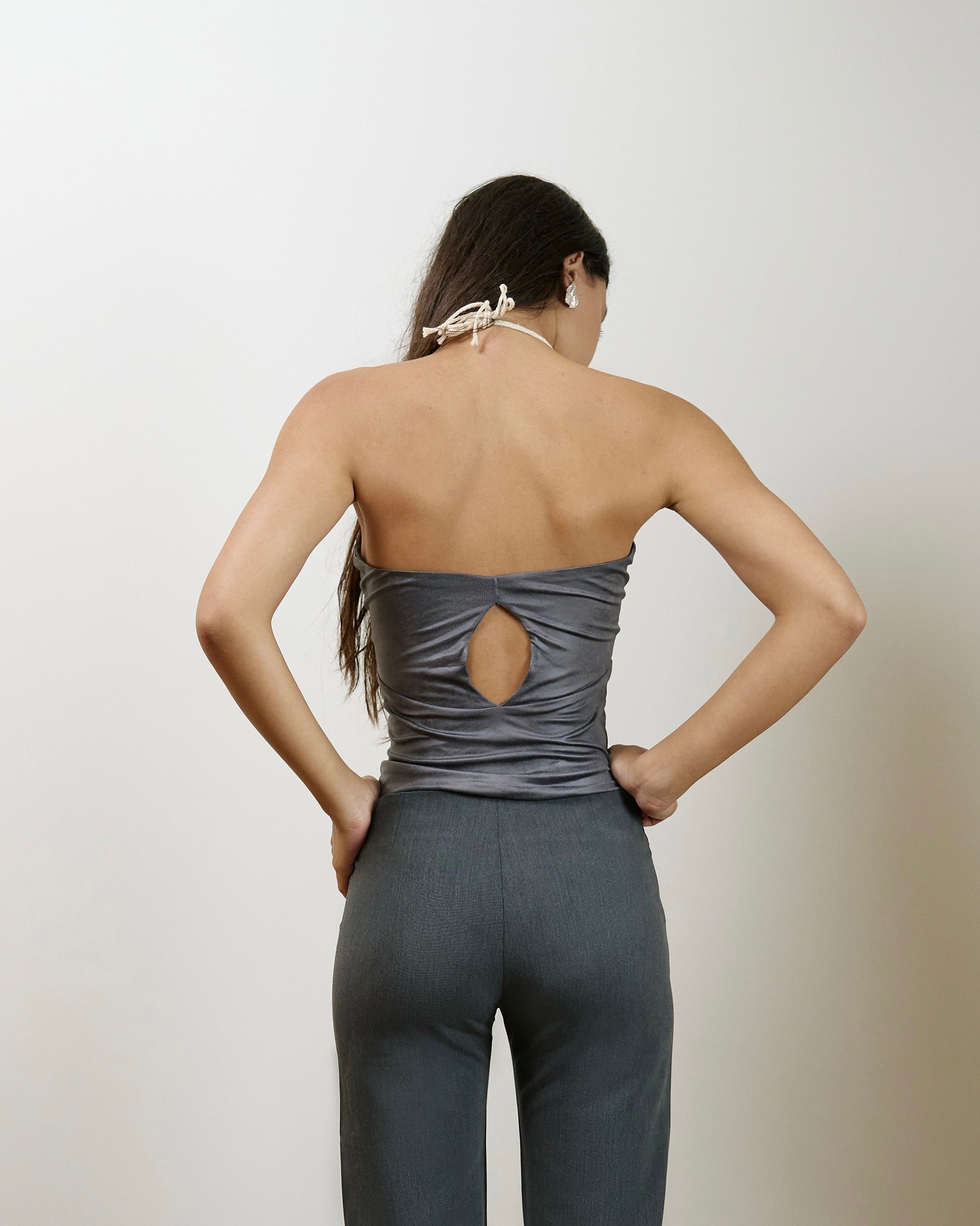 Tube top with a rope neck tie detail. Crafted from a smooth stretch blend for comfort and structure.